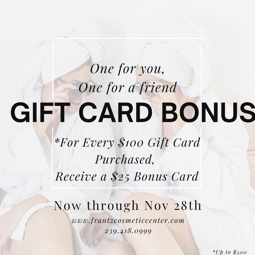 For every $100 gift card purchased, receive a $25 bonus card (up to $500)